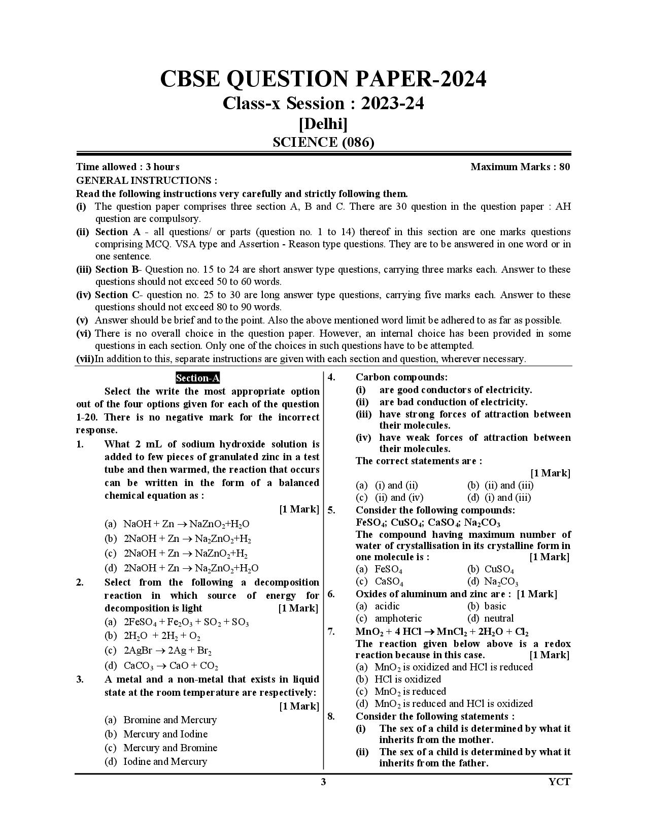 English Medium) CBSC-Class X SCIENCE Solved Papers 2025