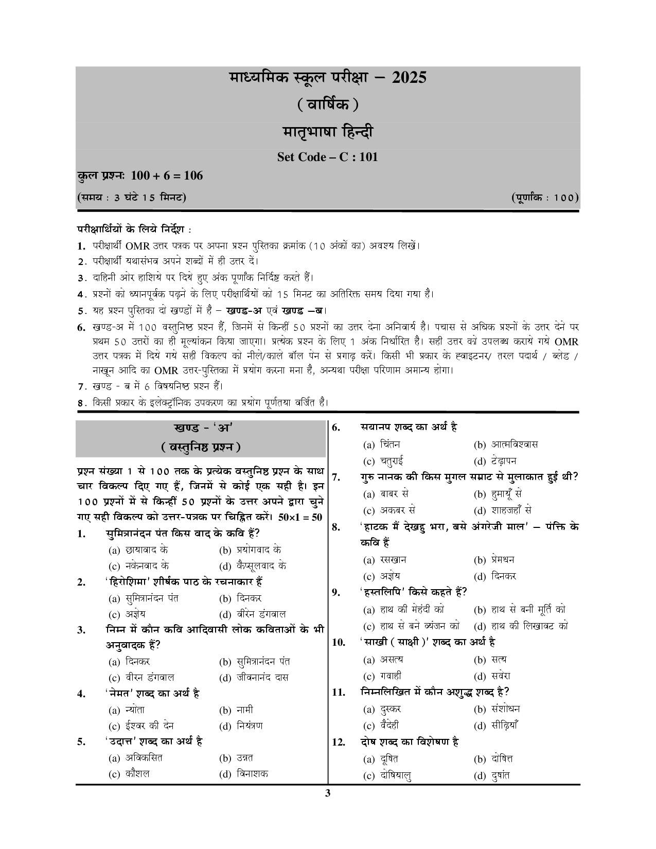| Language | Hindi & English Medium |