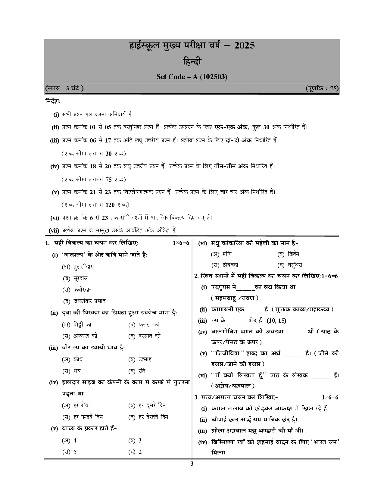 | Language | Hindi & English Medium |